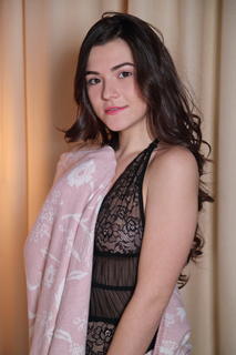 Cute brunette Hayli Sanders looks so enticing in her sexy black lace negligee, and even better when she pulls it up to reveal her shaved pussy. She strips naked, groping her beautiful breasts as she spreads her smooth pink slit open and teases it with eager fingers. Turning into doggy position, the horny babe masturbates without inhibition.